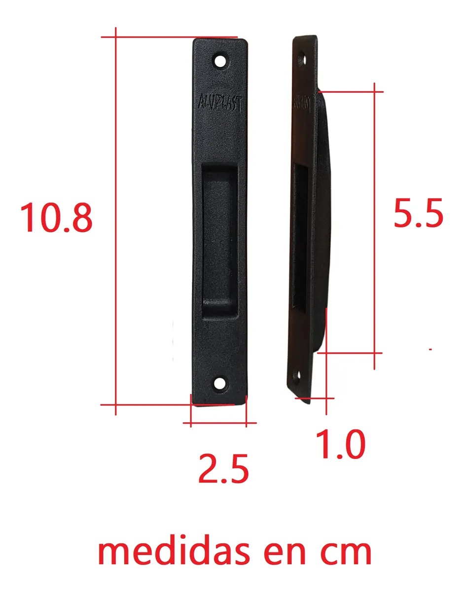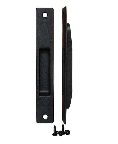 Tiradores Negros de plástico de embutir para ventana corrediza en aluminio.