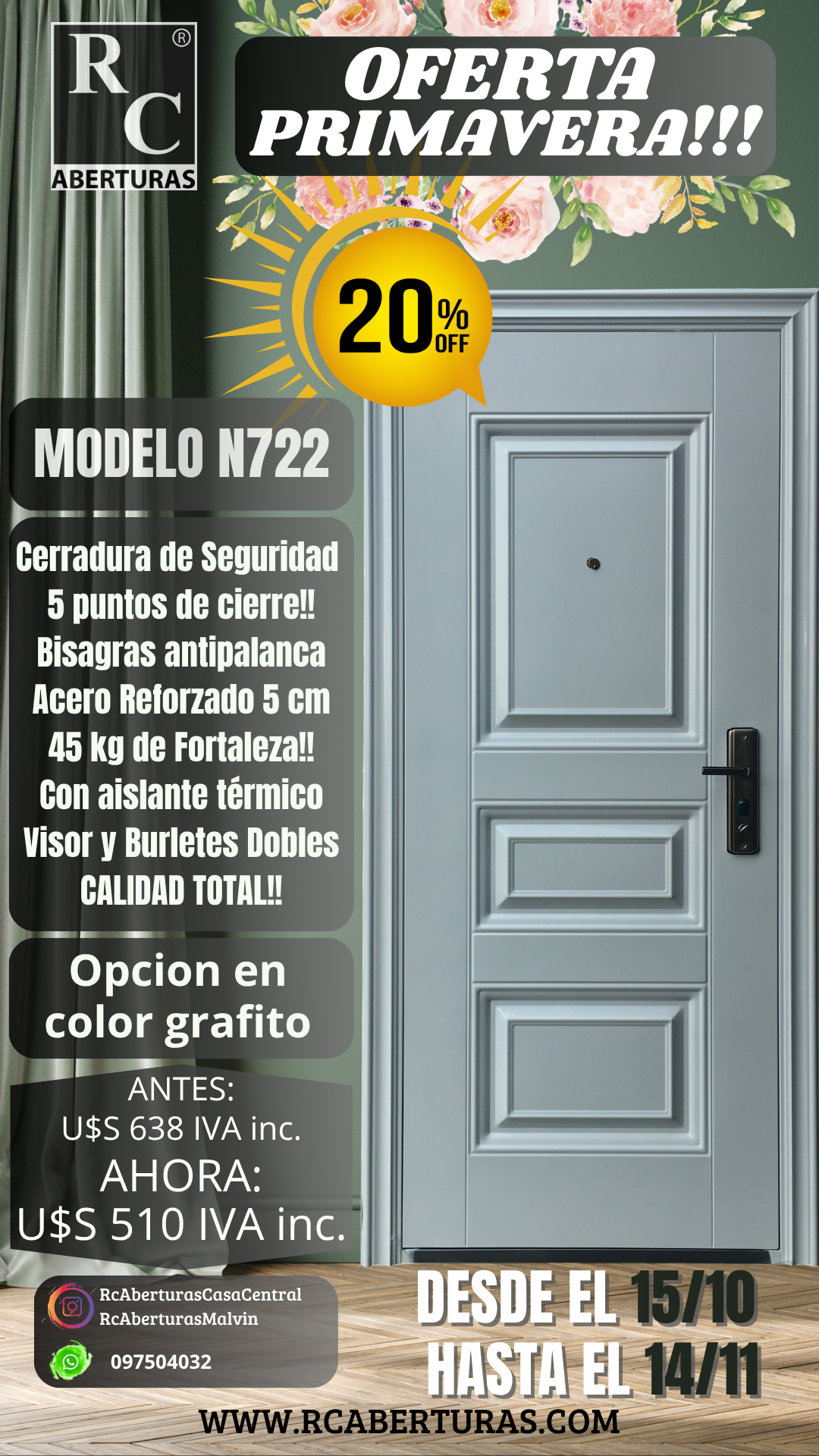 – Puerta de Seguridad con doble placa de acero estampada en ambas caras (Peso 45 Kg)