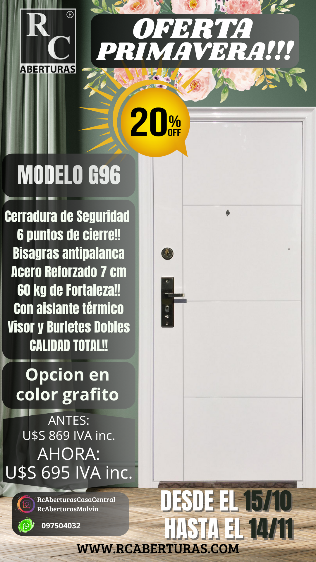 OFERTA hasta el 14/11/2025 – U$S 695 IVA INCLUIDO