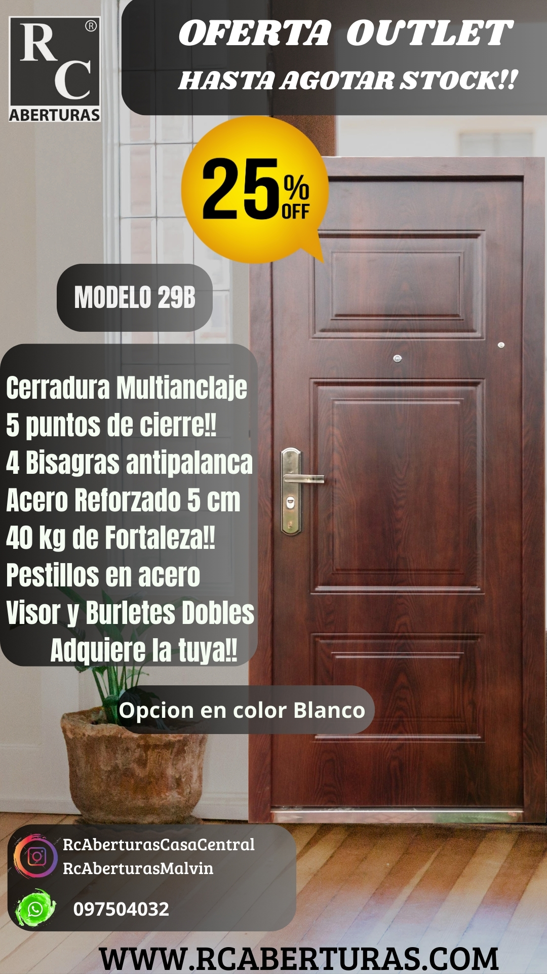 – Puerta de Seguridad con doble placa de acero estampada en ambas caras (Peso 40 Kg)